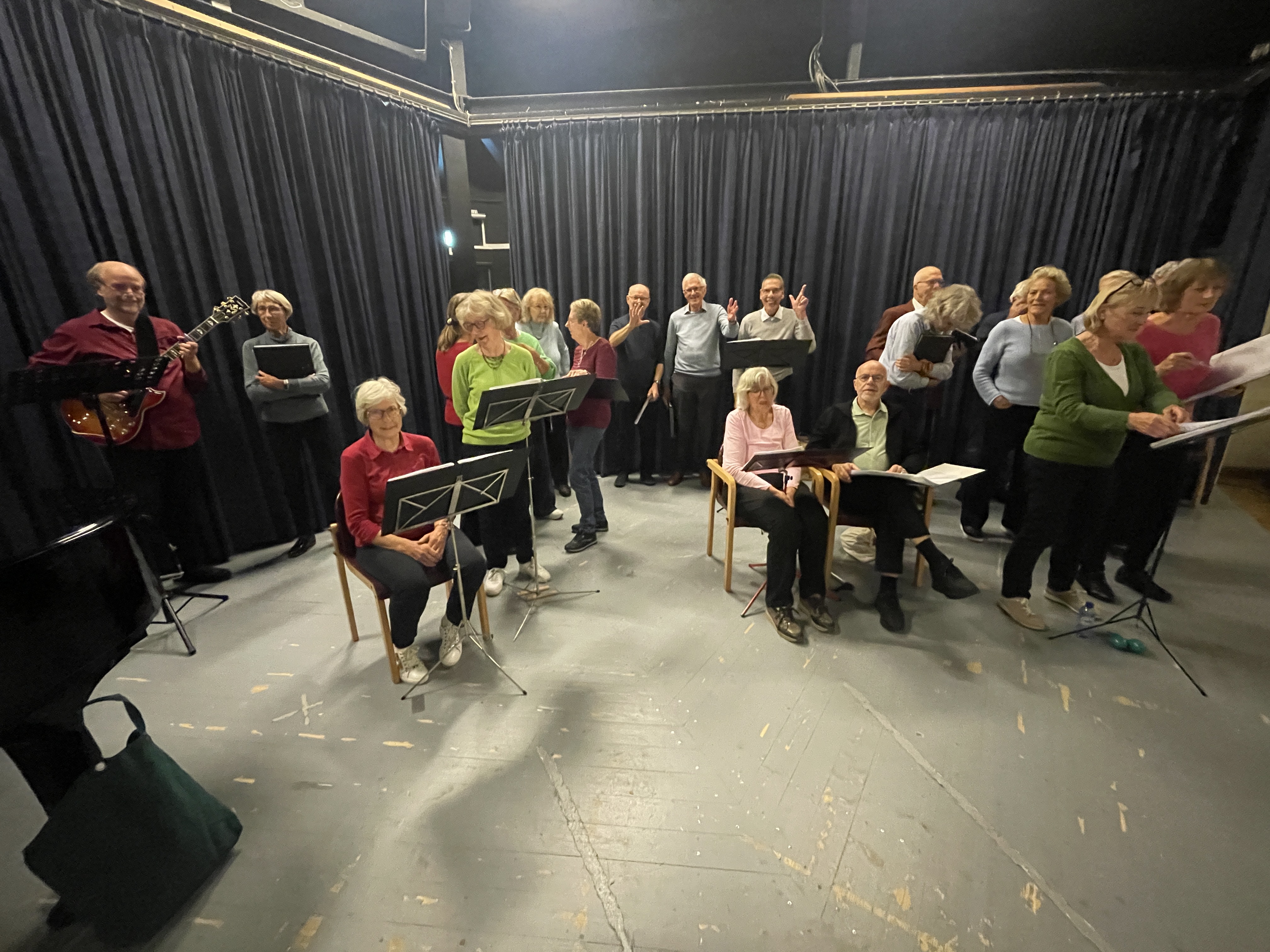 Vrijdag 10 oktober zongen we als contrast juist in een behoorlijk kleine zaal bij ’t Onderdak in Sassenheim. Het was aardig dringen aan onze kant van de zaal. Maar ook hier reageerde het publiek enthousiast en met plezier. En we zagen zelfs een meneer wat traantjes wegpinken bij ‘Country roads’ wat nou niet echt een tranentrekker is.